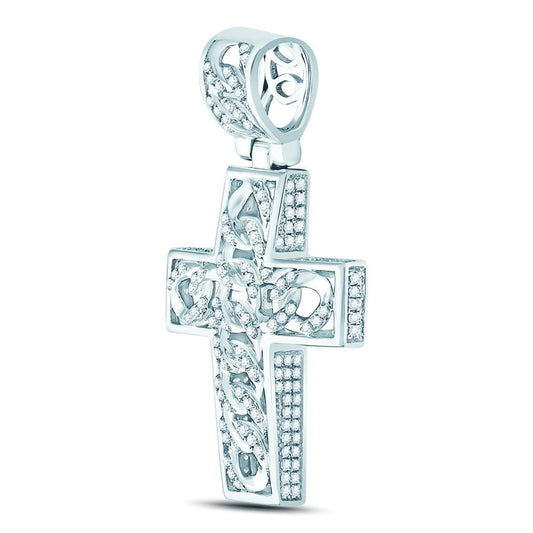 Goldini 10kt White Gold Mens Round Diamond Curb Link Cross Charm Pendant 5/8 Cttw