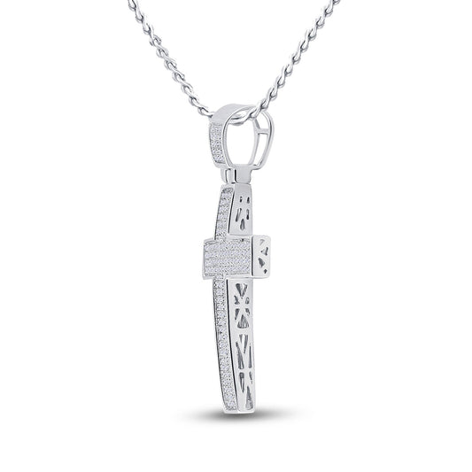 Goldini 10kt White Gold Mens Round Diamond Cross Charm Pendant 1/2 Cttw