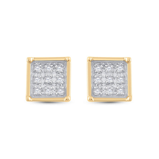 Yellow-tone Sterling Silver Womens Round Diamond Square Earrings 1/20 Cttw
