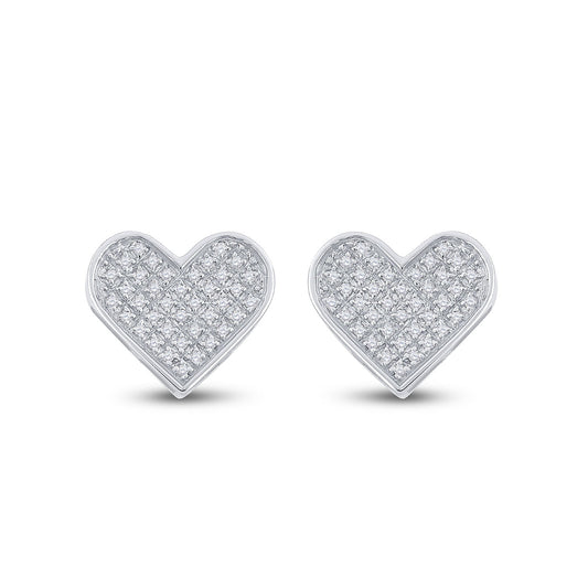 Sterling Silver Womens Round Diamond Heart Earrings 1/10 Cttw