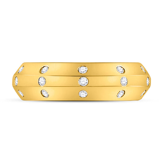 14kt Yellow Gold Womens Round Diamond Wedding Contoured Band 1/20 Cttw