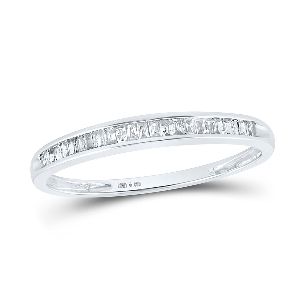 Sterling Silver Womens Baguette Diamond Wedding Anniversary Band Ring 1/6 Cttw